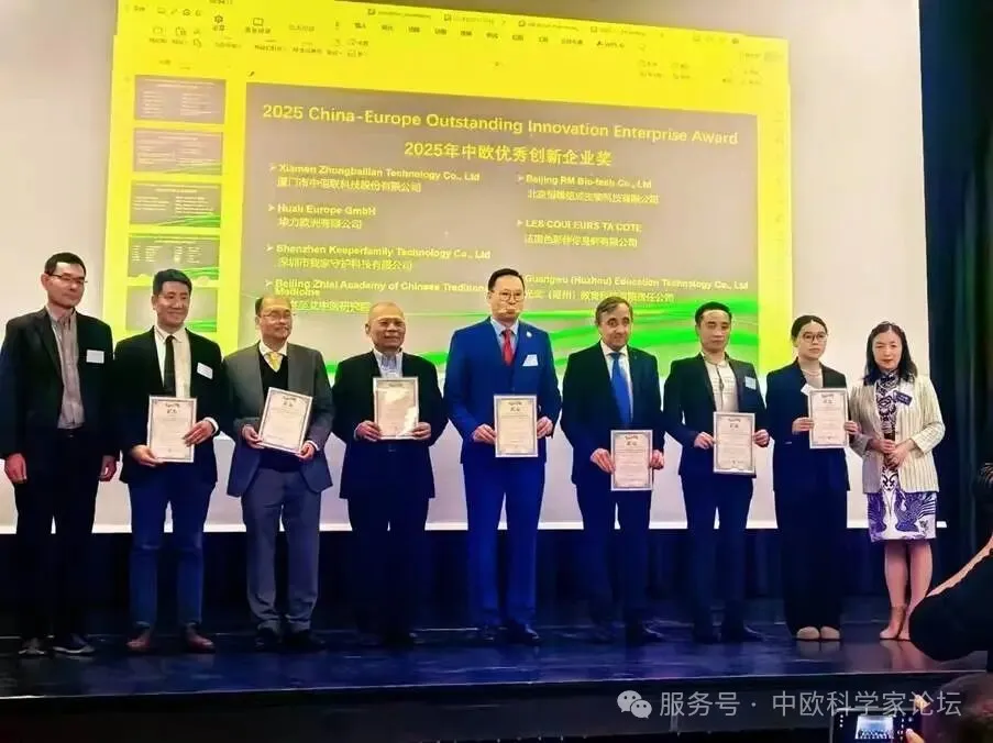 论坛颁奖环节由中欧科学家论坛秘书长、欧中人工智能协会会长肖灵艳主持,现场颁发 “2025 中欧杰出青年科学家奖” ,陶灵、陈亮、李峥杰等青年学者获奖;“中欧优秀创新企业奖”,获奖企业涵盖中国与欧洲多地创新机构,包括厦门中佰联科技、华力欧洲、深圳我家守护科技、北京至艾中医研究院、法国 “色彩伴你身畔” 等;“论坛杰出成就奖”,多名欧洲院士和资深教授嘉宾荣获奖项。论坛从多维度表彰和激励取得突出成绩的青年人才、创新企业与世界顶尖科学家,推动国际创新合作,进一步激发科创生态系统活力。